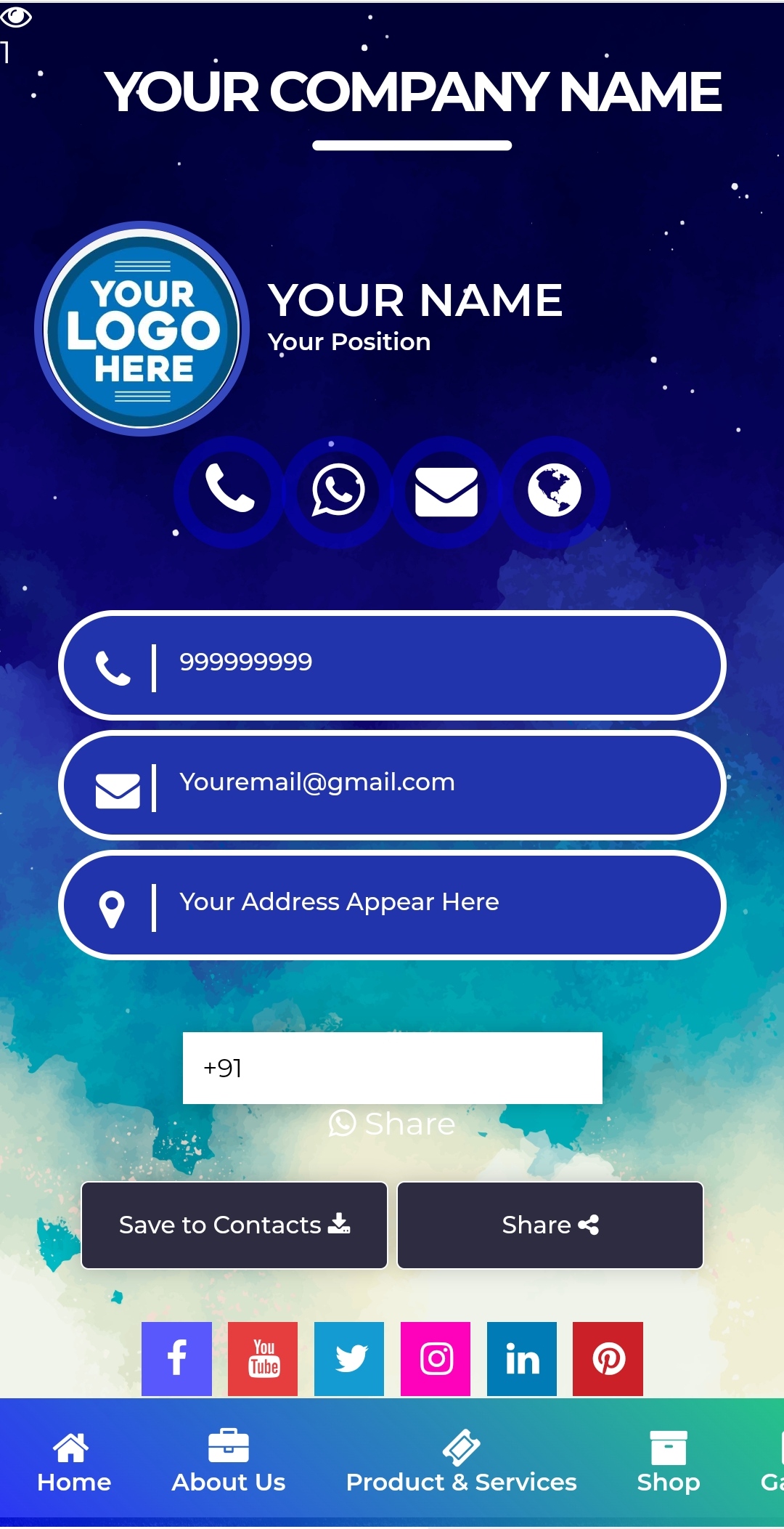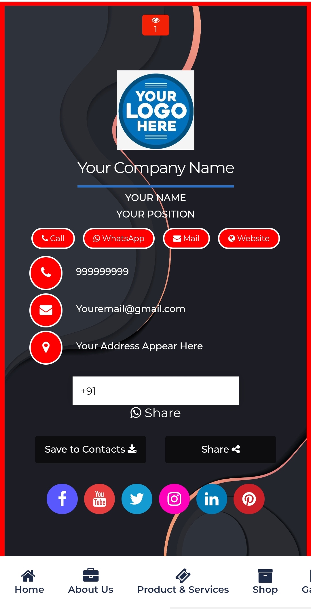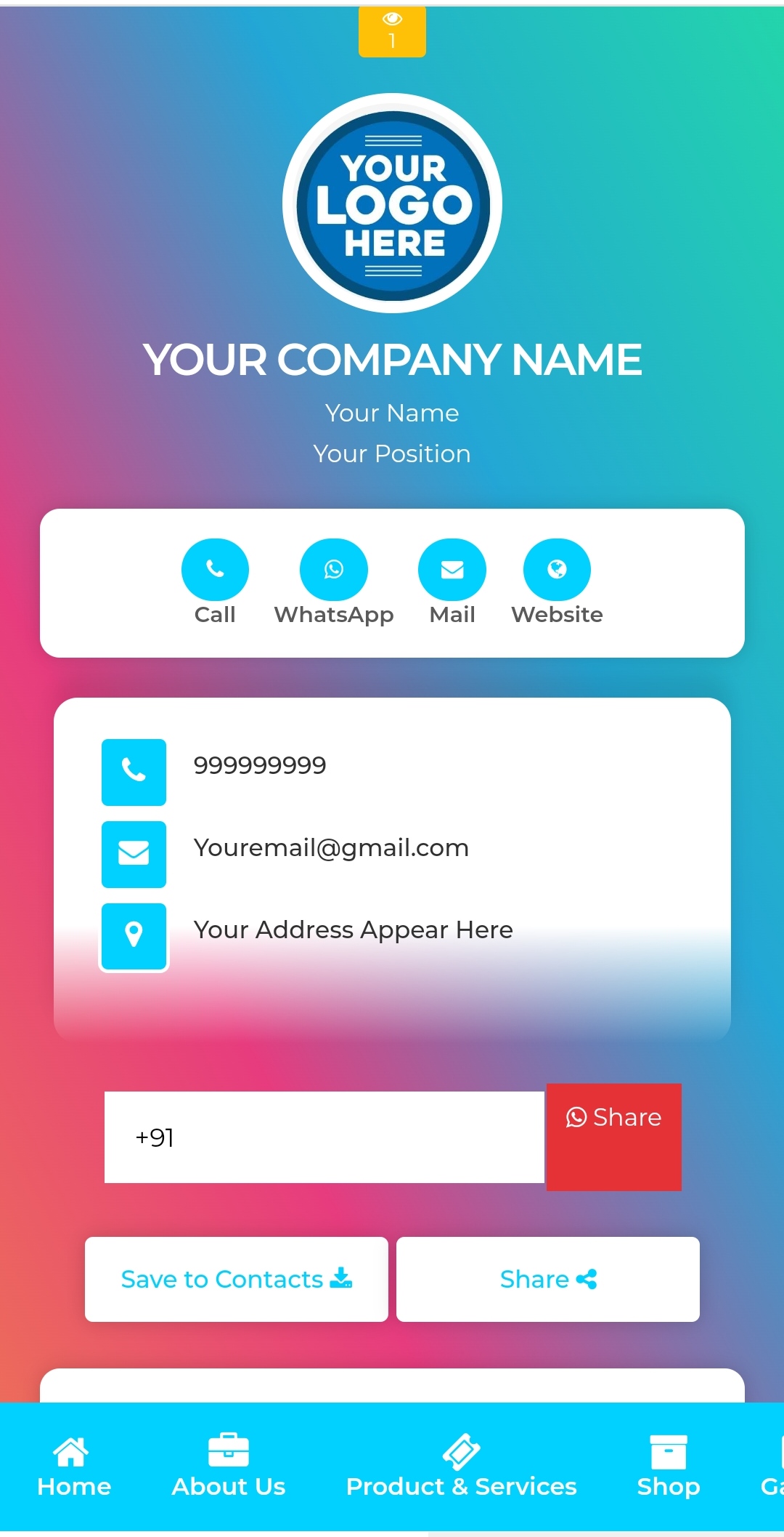Design your digital visiting card in 2 minutes - it's easy, elegant and free. This Online Vcard is always in your pocket, never tears and never runs out. Your Digital Visiting Card can be easily updated with our user-friendly dashboard, so you won't need to re-print a business card again.